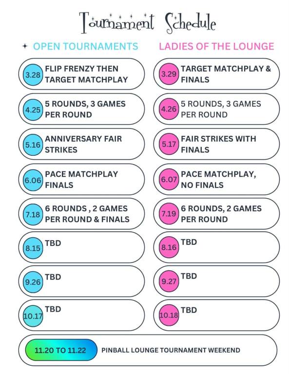 We host Monthly IFPA Tournaments both Open and Ladies.